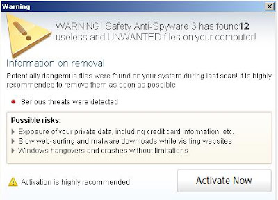 SafetyAntispyware is a new rogue anti-spyware application. However, the functionality follows the same pattern as other rogues.