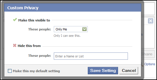 As you can see, the default setting is set for Only Friends and this particular post is set for Only Me.