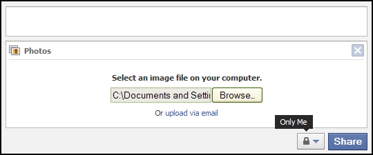 Once a photo is selected and the privacy options are set, the next step is to Share.