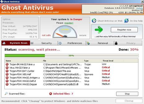 GhostAntivirus is a new rogue anti-virus application. It is a clone of InternetAntivirusPro.