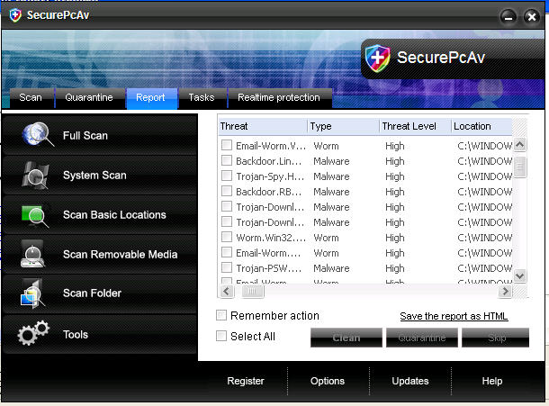 If your PC is infected with SecurePcAv you will most likely experience the following:
