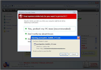 And then eventually leads to the fake scanning page that will surely alert you to download and execute binary file, just like this one:
