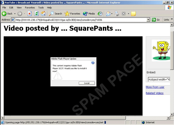 Similar to previously featured KOOBFACE-related attacks, users were asked to install a rouge software to play the said video, an Adobe Flash Player file, which in reality, is a worm detected by Trend Micro as WORM_KOOBFACE.IT.
