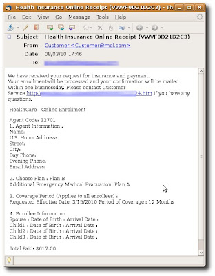 Whilst checking through some URLs supposedly serving up malicious code to exploit this vulnerability, I noticed a link to some spam runs from earlier in the week. On March 8th SophosLabs saw spam messages attempting to trick the recipient into visiting rogue web pages. Messages used at least two social engineering tricks to lure victims into clicking the malicious link.