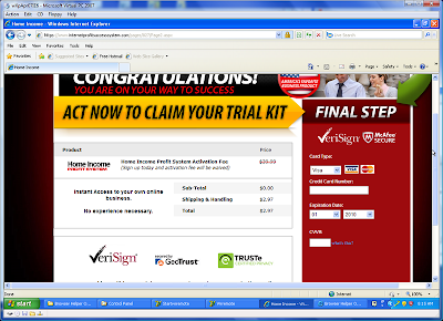 If you click one of the links, you are actually taken to another website – internetprofitsuccesssystem.com. It was registered on 8th September 2009, and it’s ownership is also hidden behind a privacy protector.