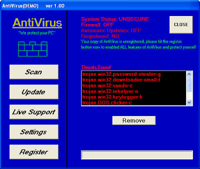 Yesterday, though, we came across a misleading application called AntiVirusDemoFraud that is—how to say?—possibly a little less sophisticated than some in terms of user interface design.