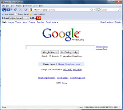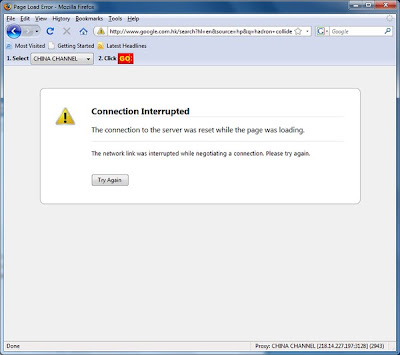 Using a Firefox 3.0 add-on created by developers in Hong Kong, Betanews was able to briefly establish a connection with the Internet via a proxy based in mainland China. With that proxy, we were able to confirm that searches performed using Google’s Hong Kong-based page were effectively blocked.