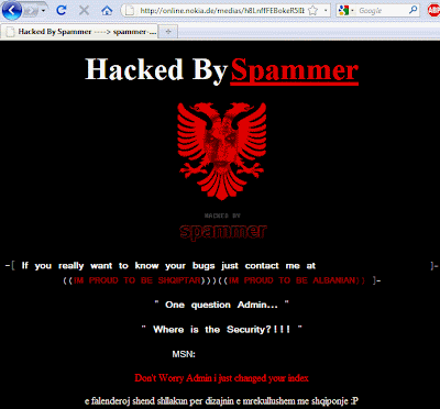 This isn’t the first time Nokia domains have come under attack. The above defacement – by an Albanian hacker called “Spammer” – seems eager to let the webmaster know they can help with the bugs, but I’m pretty sure an email would have been just as useful. Nokia.de have been notified of the defacement, but I’ve had no word back as of yet.