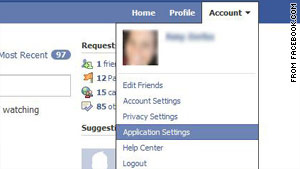 And of course there are personal settings. A user can click the “Account” tab at the top right of their Facebook home page, then scroll down to “Application Settings” and “Privacy Settings” to make changes.