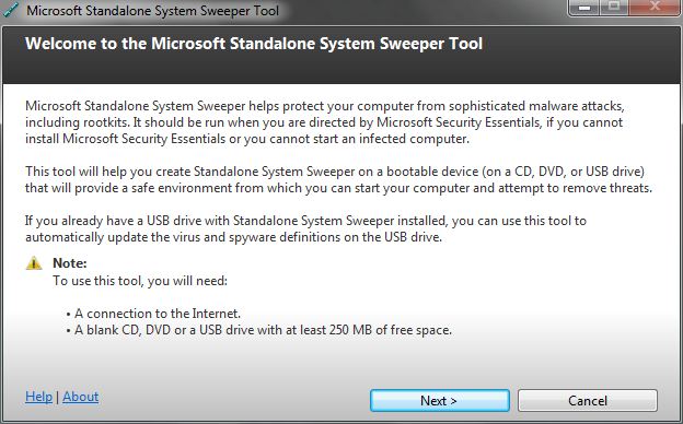 Interested users can download Microsoft Standalone System Sweeper from the official project website. It is basically a recovery CD or USB application that Windows users can use to remove malware from a system.